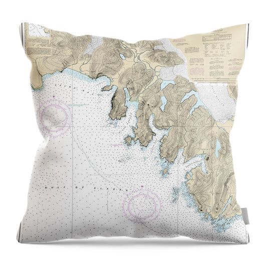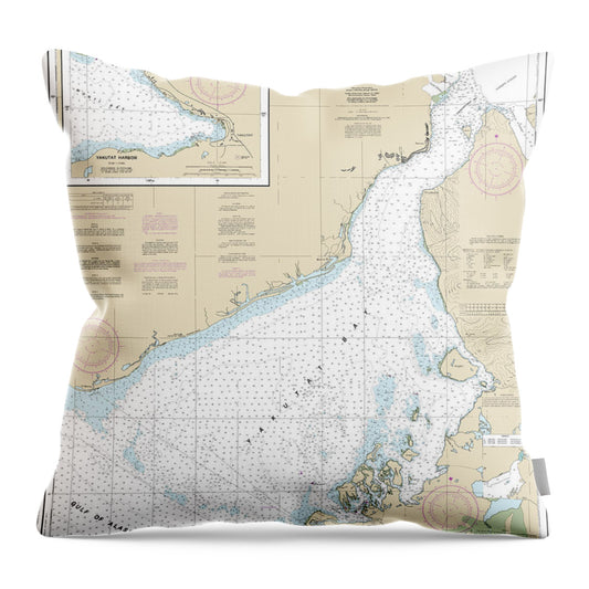 Nautical Chart-16761 Yakutat Bay, Yakutat Harbor - Throw Pillow