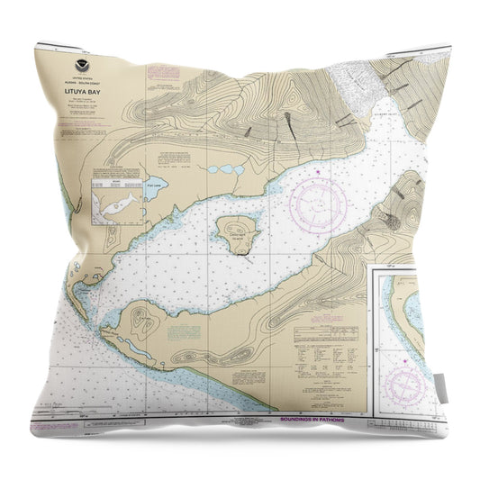 Nautical Chart-16762 Lituya Bay, Lituya Bay Entrance - Throw Pillow