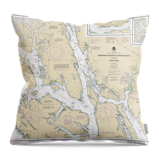 Nautical Chart-17300 Stephens Passage-cross Sound, Including Lynn Canal - Throw Pillow