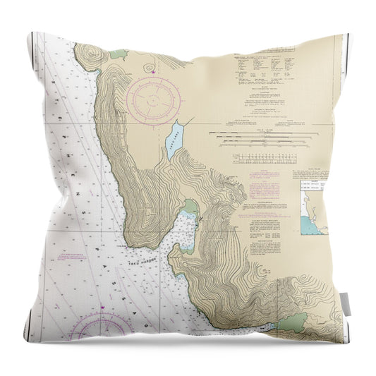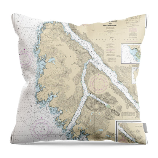 Nautical Chart-17303 Yakobi Island-lisianski Inlet, Pelican Harbor - Throw Pillow