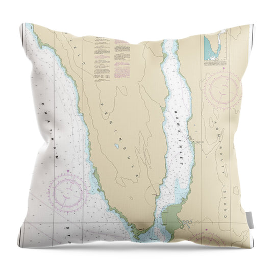 Nautical Chart-17312 Hawk Inlet, Chatham Strait - Throw Pillow