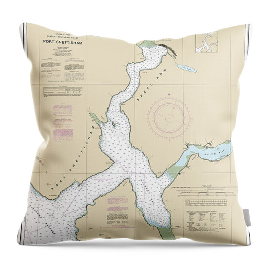 Nautical Chart-17313 Port Snettisham - Throw Pillow