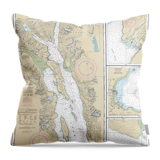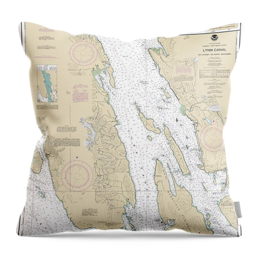 Nautical Chart-17316 Lynn Canal-icy Str-point Sherman, Funter Bay, Chatham Strait - Throw Pillow