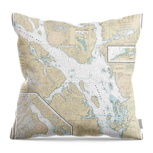 Nautical Chart-17318 Glacier Bay, Bartlett Cove - Throw Pillow