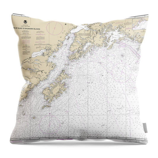 Nautical Chart-16013 Cape St Elias-shumagin Islands, Semidi Islands - Throw Pillow