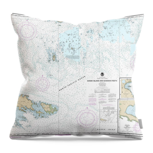 Nautical Chart-16547 Sanak Island-sandman Reefs, Northeast Harbor, Peterson-salmon Bays, Sanak Harbor - Throw Pillow