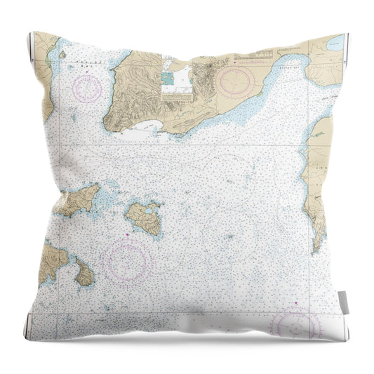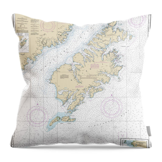 Nautical Chart-16580 Kodiak Island, Southwest Anchorage, Chirikof Island - Throw Pillow