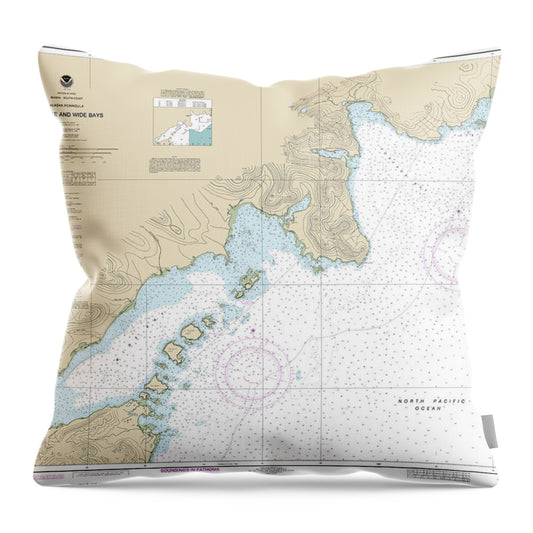 Nautical Chart-16568 Wide Bay-cape Kumlik, Alaska Pen - Throw Pillow
