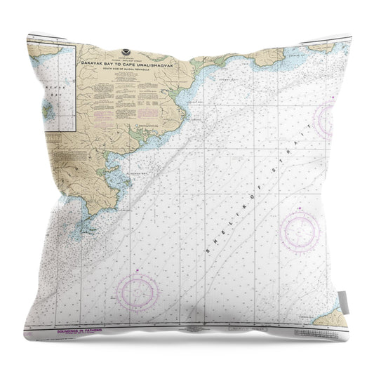Nautical Chart-16575 Dakavak Bay-cape Unalishagvak, Alinchak Bay - Throw Pillow