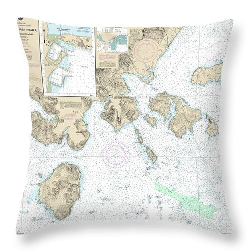 Nautical Chart-16549 Cold Bay-approaches, Alaska Pen, King Cove Harbor - Throw Pillow