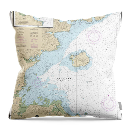Nautical Chart-16648 Kamishak Bay, Lliamna Bay - Throw Pillow