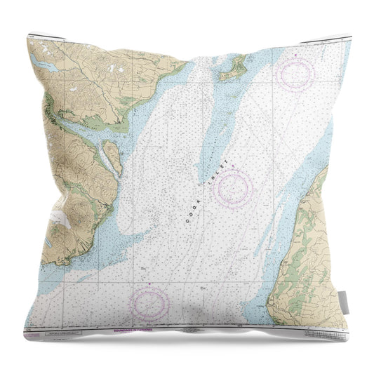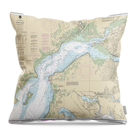 Nautical Chart-16660 Cook Inlet-northern Part - Throw Pillow