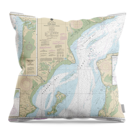 Nautical Chart-16661 Cook Inlet-anchor Point-kalgin Island, Ninilchik Harbor - Throw Pillow
