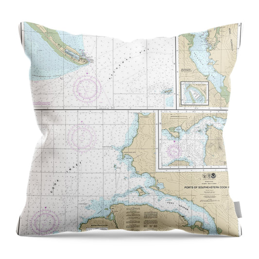 Nautical Chart-16646 Ports-southeastern Cook Inlet Port Chatham, Port Graham, Seldovia Bay, Seldovia Harbor, Approaches-homer Hbr, Homer Harbor - Throw Pillow