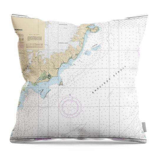 Nautical Chart-16608 Shelikof Strait-cape Douglas-cape Nukshak - Throw Pillow