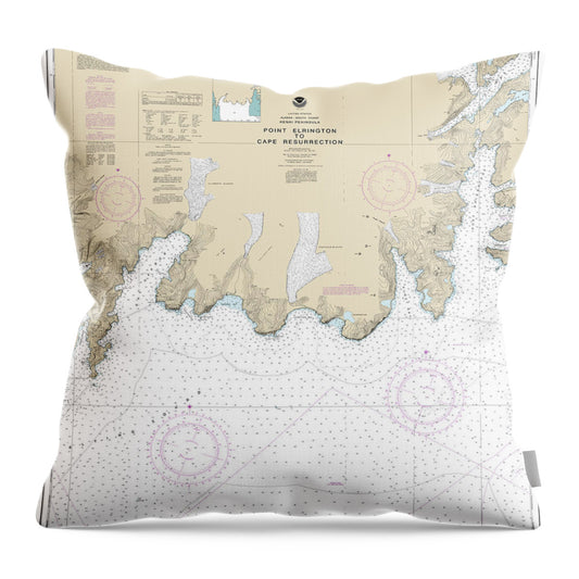 Nautical Chart-16680 Point Elrington-east Chugach Island - Throw Pillow