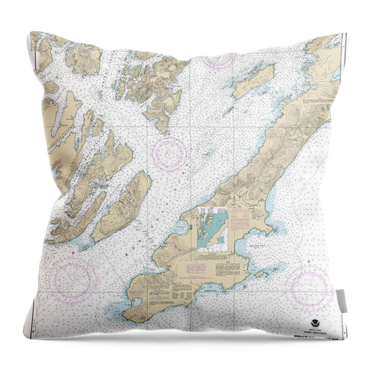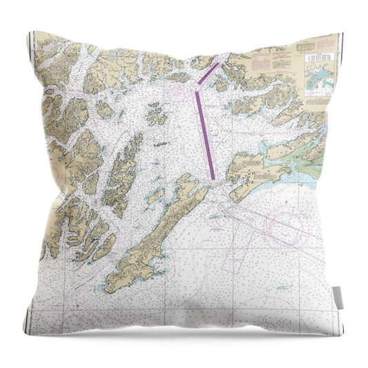 Nautical Chart-16701 Prince William Sound-western Entrance - Throw Pillow