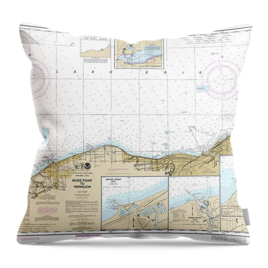 Nautical Chart-14826 Moss Point-vermilion, Beaver Creek, Vermilion Harbor, Rocky River - Throw Pillow