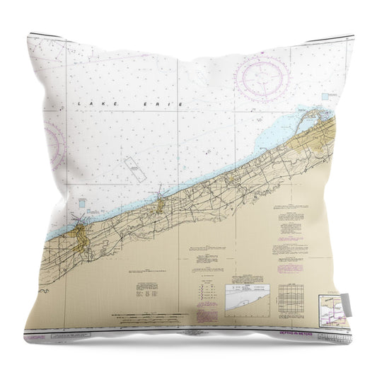 Nautical Chart-14829 Geneva-lorain, Beaver Creek, Rocky River, Mentor Harbor, Chagrin River - Throw Pillow