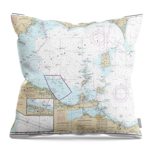 Nautical Chart-14830 West End-lake Erie, Port Clinton Harbor, Monroe Harbor, Lorain-detriot River, Vermilion - Throw Pillow