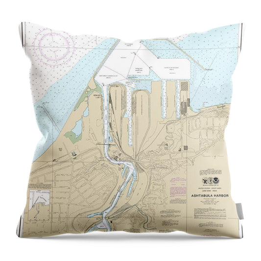 Nautical Chart-14836 Ashtabula Harbor - Throw Pillow