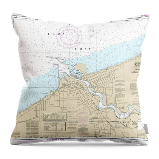 Nautical Chart-14841 Lorain Harbor - Throw Pillow