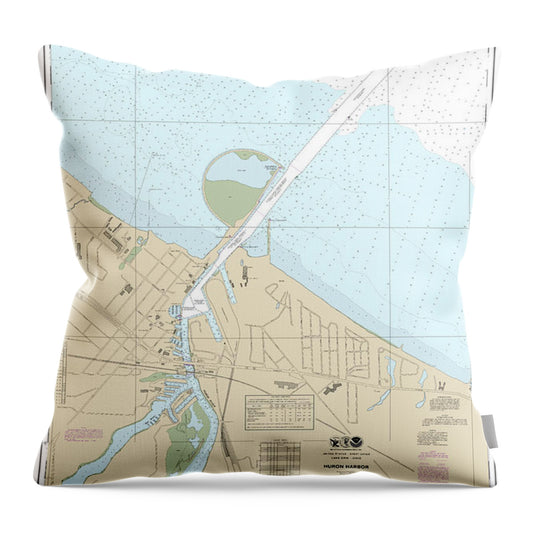 Nautical Chart-14843 Huron Harbor - Throw Pillow