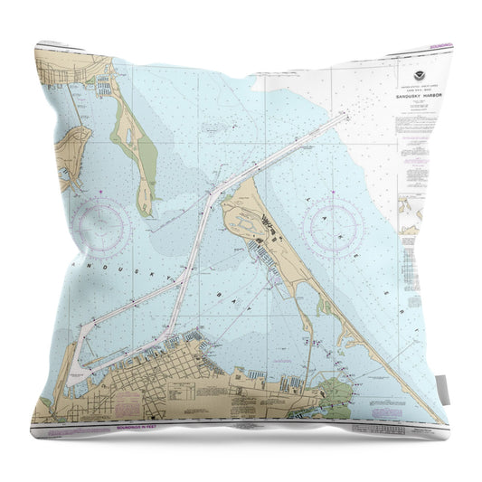 Nautical Chart-14845 Sandusky Harbor - Throw Pillow