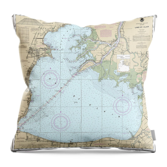 Nautical Chart-14850 Lake St Clair - Throw Pillow