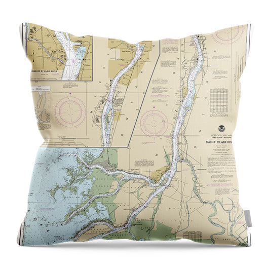 Nautical Chart-14852 St Clair River, Head-st Clair River - Throw Pillow