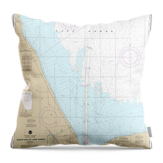 Nautical Chart-14865 South End-lake Huron - Throw Pillow