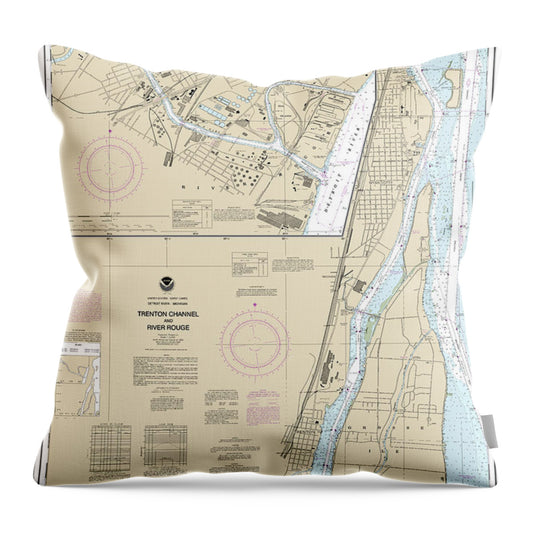 Nautical Chart-14854 Trenton Channel-river Rouge, River Rouge - Throw Pillow