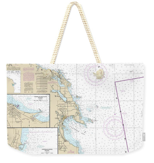 Nautical Chart-14863 Saginaw Bay, Port Austin Harbor, Caseville Harbor, Entrance-au Sable River, Sebewaing Harbor, Tawas Harbor - Weekender Tote Bag
