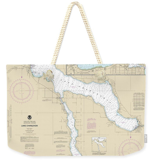 Nautical Chart-14942 Lake Charlevoix, Charlevoix, South Point-round Lake - Weekender Tote Bag