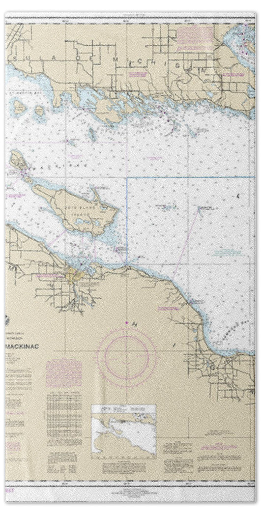 Nautical Chart-14880 Straits-mackinac - Bath Towel