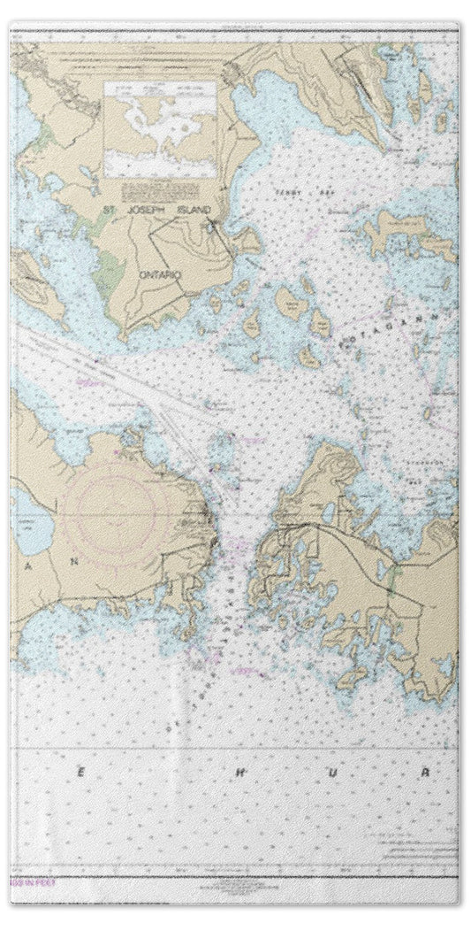 Nautical Chart-14883 St Marys River - Munuscong Lake-sault Ste Marie - Bath Towel