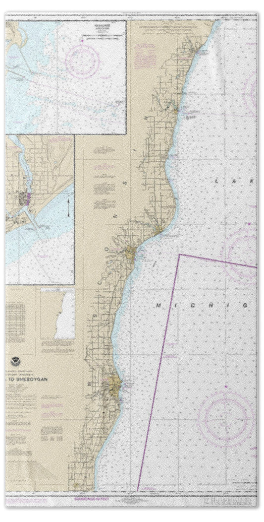 Nautical Chart-14903 Algoma-sheboygan, Kewaunee, Two Rivers - Bath Towel