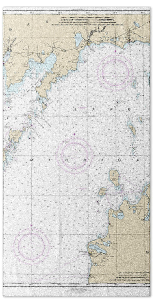 Nautical Chart-14902 North End-lake Michigan, Including Green Bay - Bath Towel