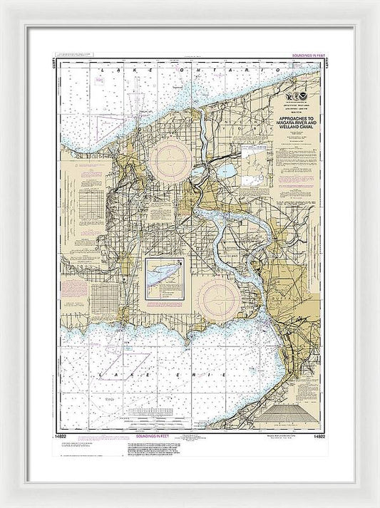 Nautical Chart-14822 Approaches-niagara River-welland Canal - Framed Print
