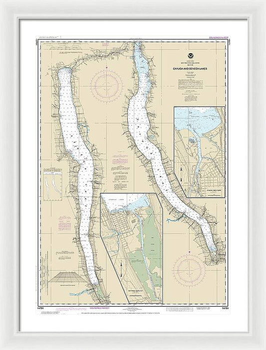 Nautical Chart-14791 Cayuga-seneca Lakes, Watkins Glen, Ithaca - Framed Print