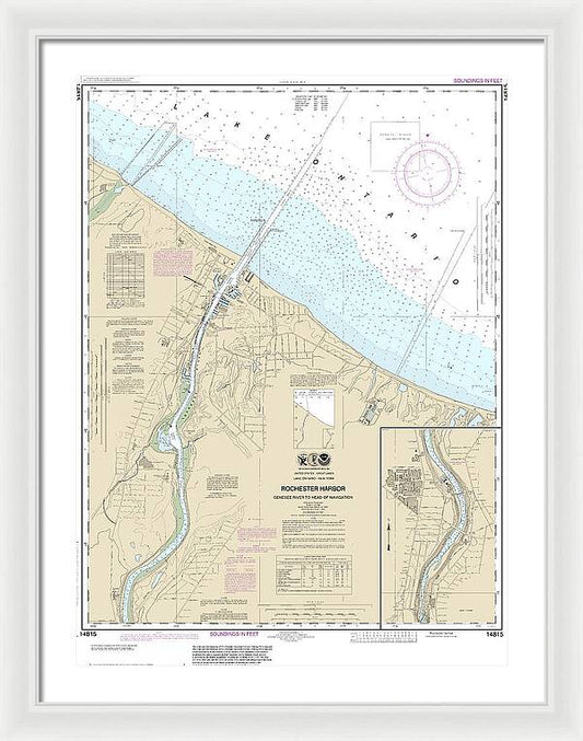 Nautical Chart-14815 Rochester Harbor, Including Genessee River-head-navigation - Framed Print