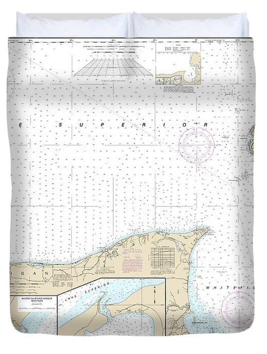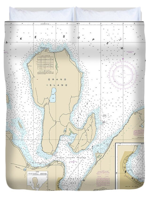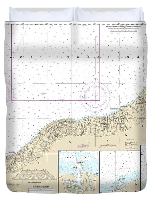 Nautical Chart-14962 St Marys River-au Sable Point, Whitefish Point, Little Lake Harbors, Grand Marais Harbor - Duvet Cover