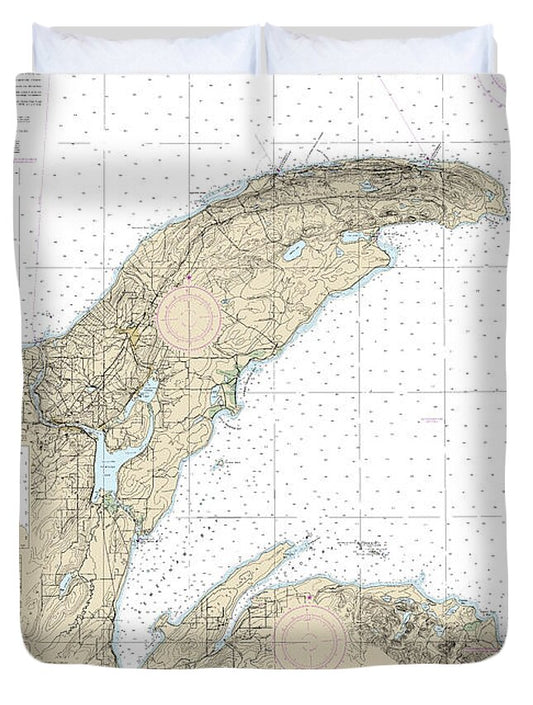 Nautical Chart-14964 Big Bay Point-redridge, Grand Traverse Bay Harbor, Lac La Belle Harbor, Copper-eagle Harbors - Duvet Cover