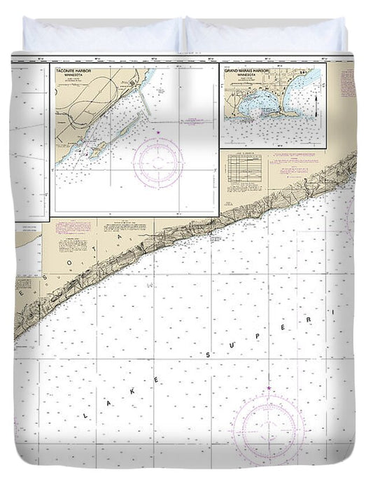 Nautical Chart-14967 Beaver Bay-pigeon Point, Silver Bay Harbor, Taconite Harbor, Grand Marais Harbor - Duvet Cover