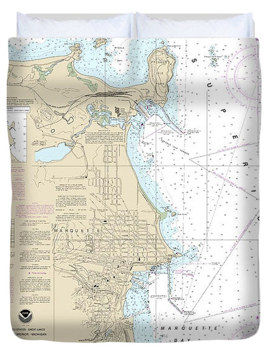 Nautical Chart-14970 Marquette-presque Isle Harbors - Duvet Cover