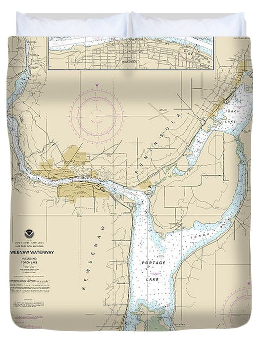 Nautical Chart-14972 Keweenaw Waterway, Including Torch Lake, Hancock-houghton - Duvet Cover