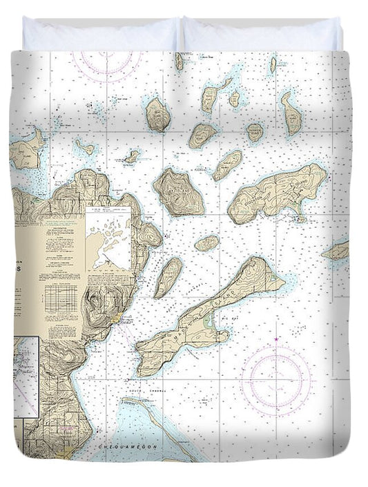 Nautical Chart-14973 Apostle Islands, Including Chequamegan Bay, Bayfield Harbor, Pikes Bay Harbor, La Pointe Harbor - Duvet Cover