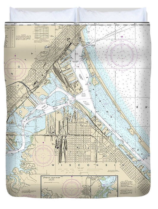 Nautical Chart-14975 Duluth-superior Harbor, Upper St Louis River - Duvet Cover