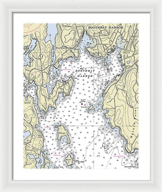 Boothbay Harbor Maine Nautical Chart - Framed Print