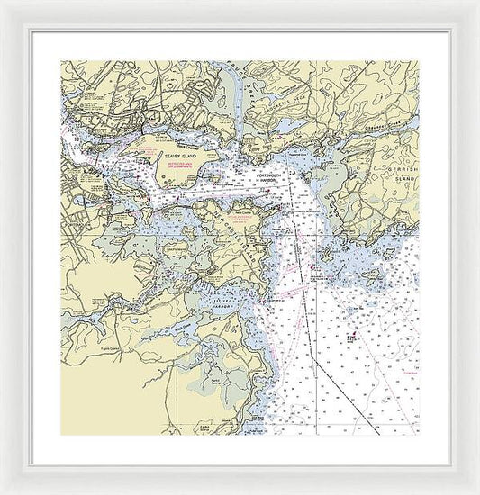 Belfast Harbor-maine Nautical Chart - Framed Print